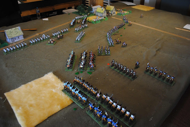 The French had an early setback when the Austrian gun in the village broke their artillery battery moving up the road with their first shot. But this seemed to be balanced by the Legere blundering into a charge at the village and breaking part of the Austrian front line straight up.