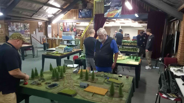There were 7 tables (3 provided by Sean) & 13 entries (with 2 extra players filling in for a game to minimise byes). Armies included German, Fin, Italian, Japanese, US, British, Soviet & Australian.
